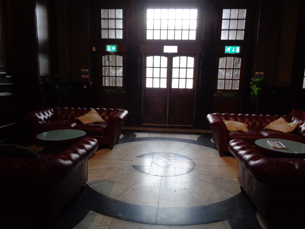 Nach Betreten des Gebäudes ist die architektonische Pracht sogar noch besser zu sehen. Das Beitragsbild zeigt das Gemälde über der Ticketkasse (Sonderausstellungen sowie der Eintritt ins Planetarium kosten Eintritt), und das ebenfalls direkt in der Eingangshalle befindliche Café vermittelt den Charme eines britischen Gentlemen’s Club, inklusive weiterer sehenswerter Kunstwerke.